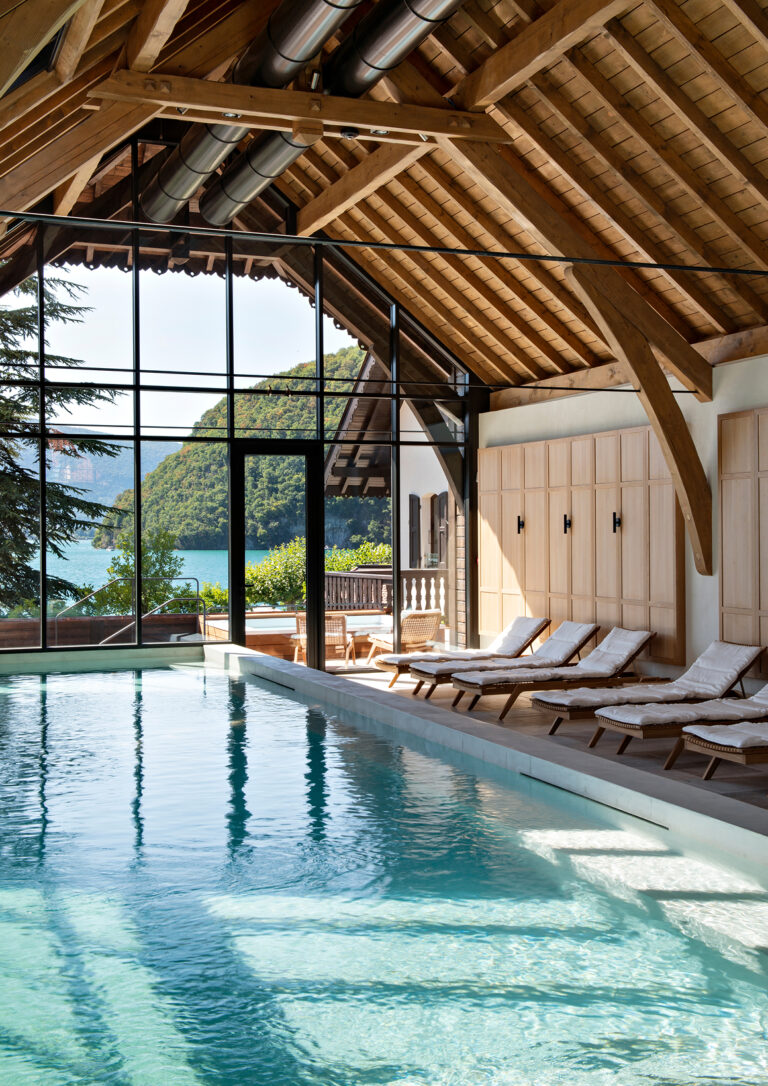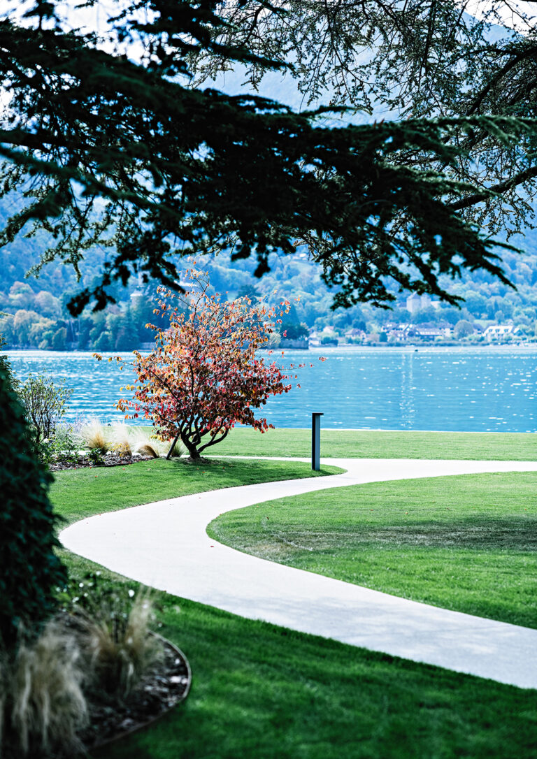 Tucked away in Talloires-Montmin on the edge of Lake Annecy, the Auberge du Père Bise offers a restorative retreat in the heart of the Alps. More than just a getaway for the night, it’s a hedonistic escape that feels like a fully immersive experience. First, follow the lakeshore and leave behind the bustle of Annecy. Pass the Roc de Chère—a rocky promontory and forested nature reserve that overlooks the Bay of Talloires. Just before descending, take a moment to lift your gaze and take in the view: a line of ridges, peaks, and summits rising above the shimmering waters of Lake Annecy.
