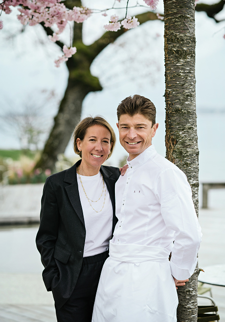 Then descend towards the lake along the port road, weaving between the village’s picturesque houses, cyclists, and walkers until you reach the Auberge du Père Bise, right at the lake’s edge. You’re greeted, welcomed, and seated on the dock, as close to the water as it gets, with a welcome cocktail from the Marius Bar in hand. Already, everything feels different.