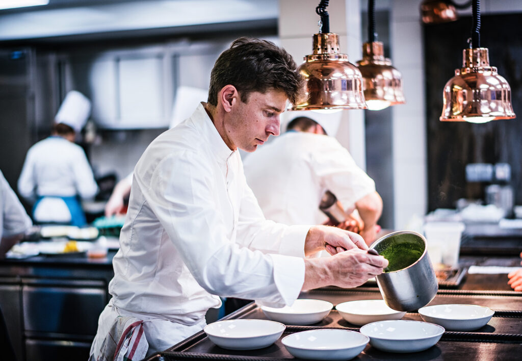 The grandson of hotel and restaurant owners, Jean Sulpice was born in 1978 in Aix-les-Bains, Savoie. He grew up close to nature and in the lively world of kitchens, before starting his apprenticeship with chefs Jean and Pierre Martin at Auberge Lamartine in Bourget-du-Lac. In 1998, he joined the team of the renowned multi-starred Savoyard chef Marc Veyrat, then based at La Maison Bleue on the shores of Lake Annecy, just a few kilometers from Talloires.