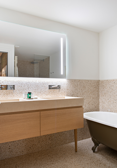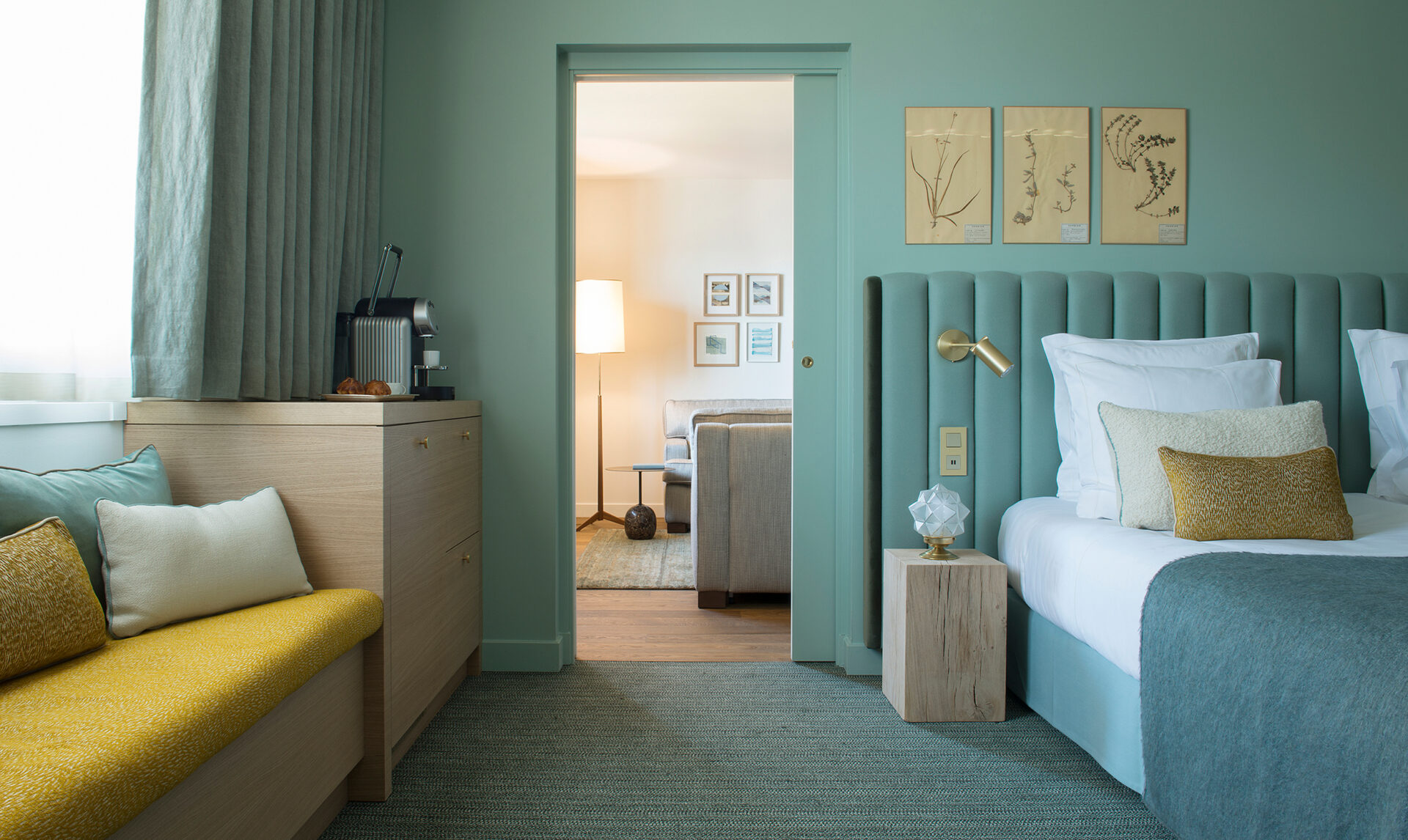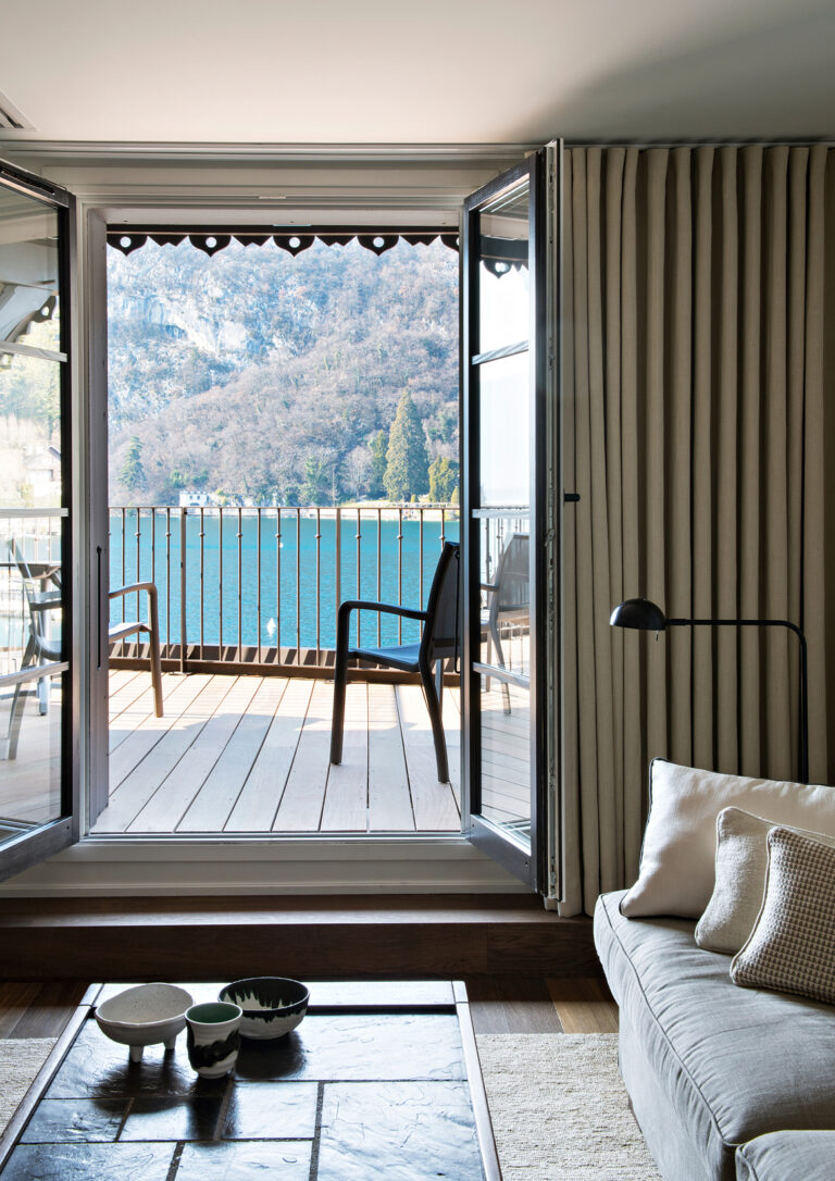 Signées par la décoratrice et scénographe Émilie Bonaventure, les suites juniors de l’Auberge du Père Bise, situées dans le bâtiment principal de l’hôtel 5 étoiles alignent de très beaux volumes