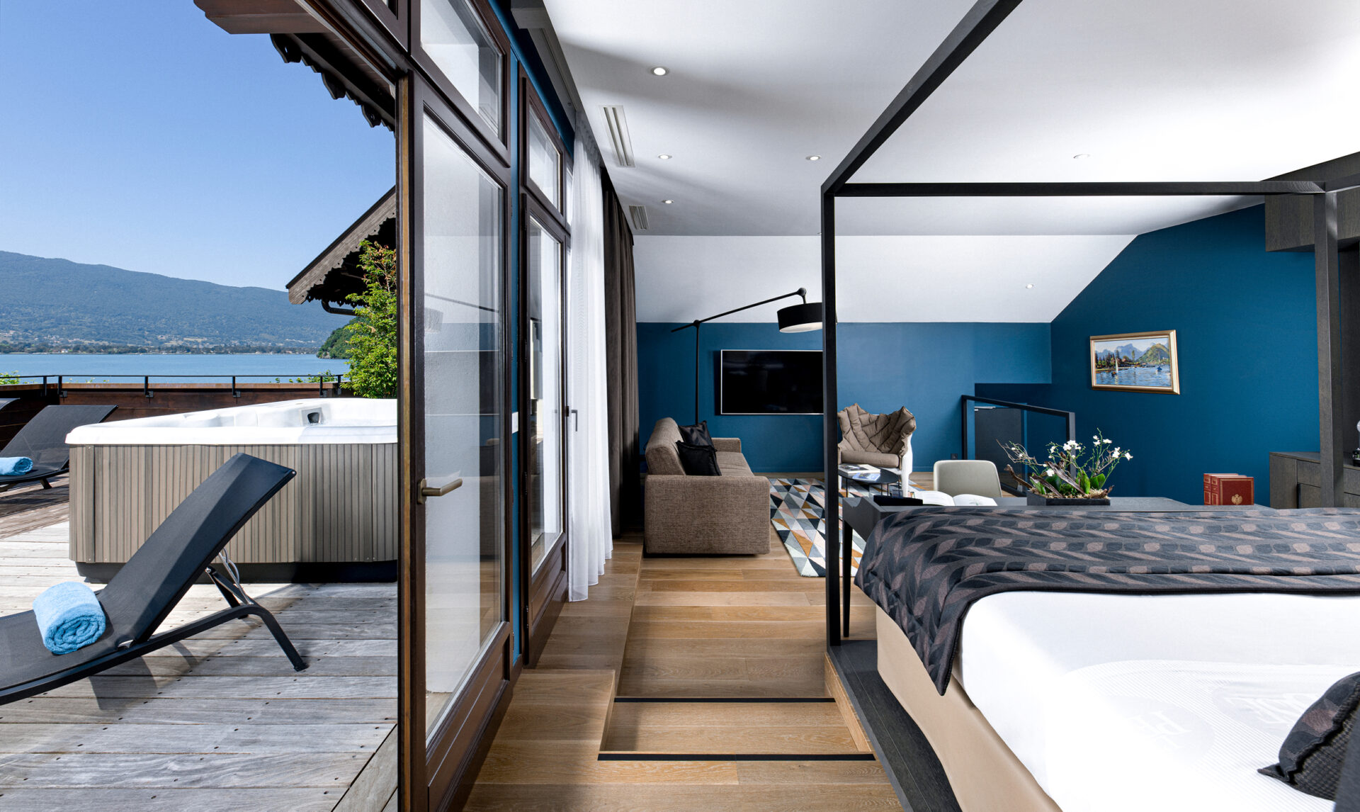 Terrasse privée, jacuzzi et vue sur le lac d’Annecy