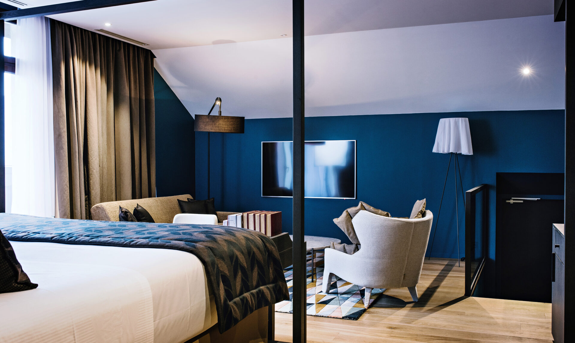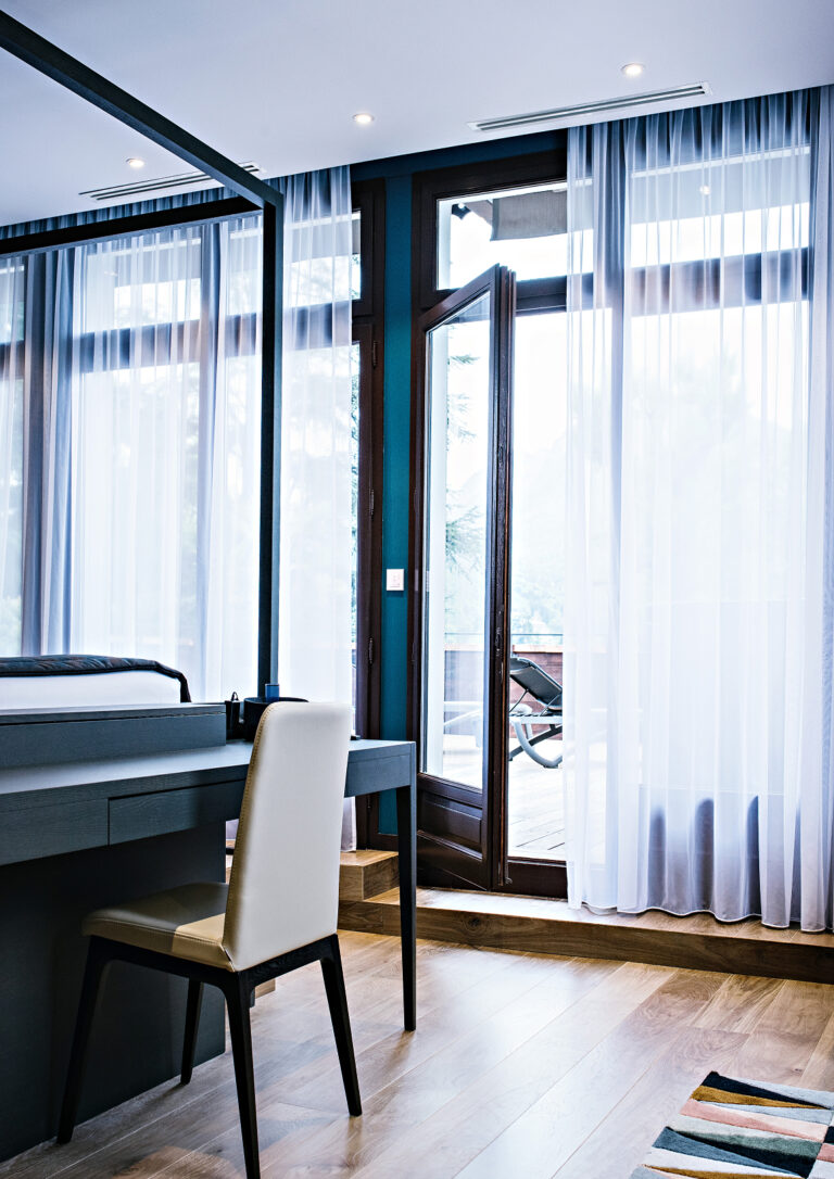 Signées par la décoratrice et scénographe Émilie Bonaventure, les suites juniors de l’Auberge du Père Bise, situées dans le bâtiment principal de l’hôtel 5 étoiles alignent de très beaux volumes