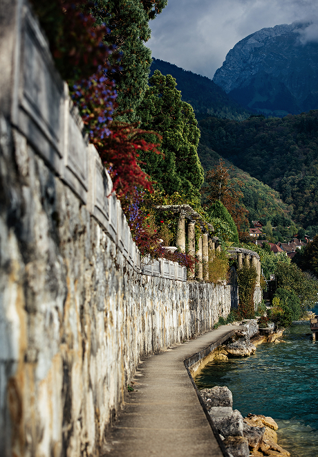 Quiconque arrive à Talloires-Montmin, par la route du port, contemplant sa baie pour la première ou la centième fois, se laisse irrésistiblement happé par les couleurs du lac d’Annecy. Puis, vient la contemplation des montagnes environnantes, verdies, parées des couleurs de l’automne ou poudrées de neige, selon la météo et la saison.